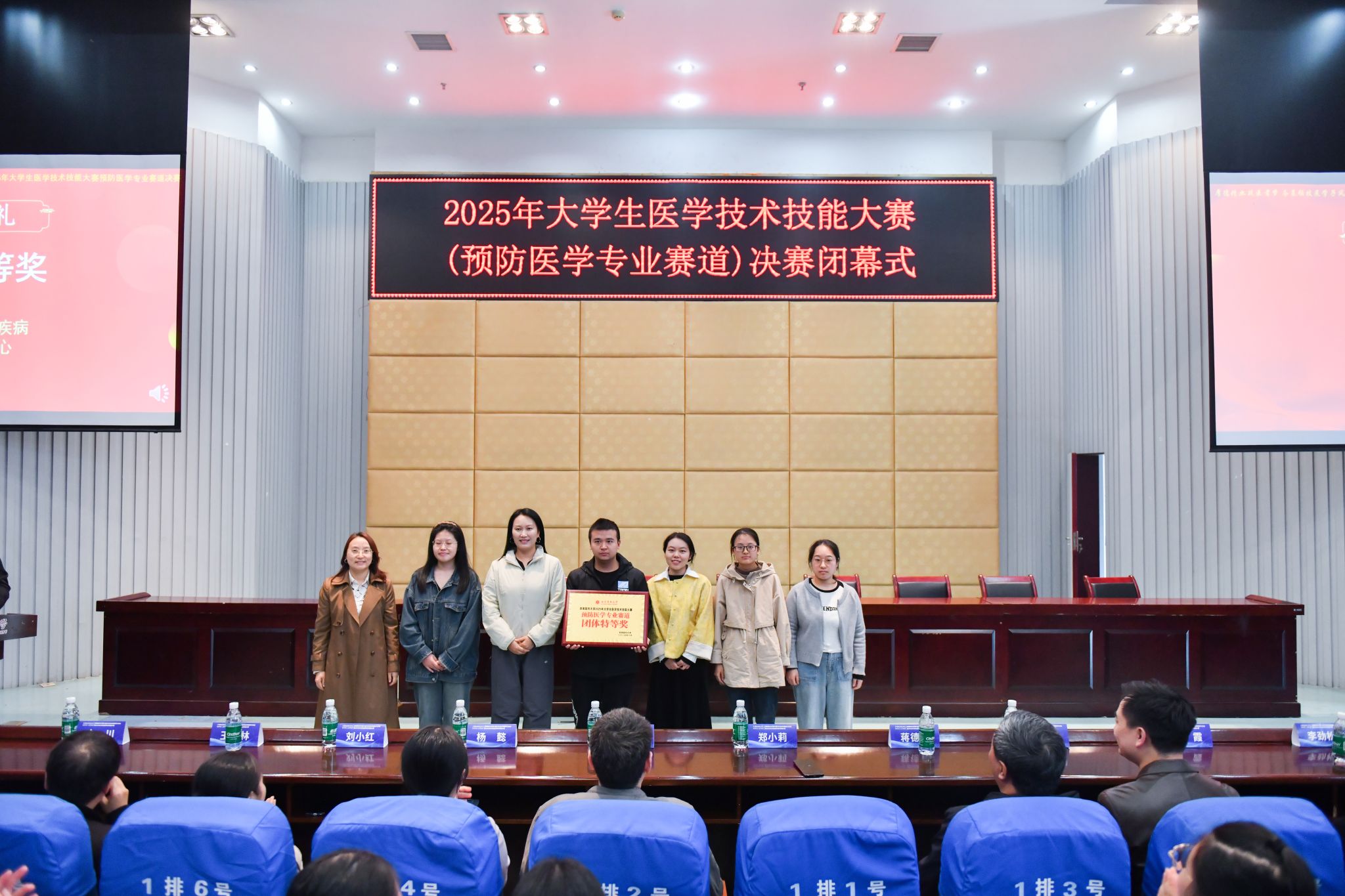 赛后闭幕式上,郑小莉及相关负责人、参赛师生、裁判员参会。裁判长蒋德勇、专家蒲霞总结点评,肯定选手表现的同时指出不足。最终,重庆市万州区疾控中心获团体特等奖;成都市郫都区疾控中心、泸州市江阳区疾控中心获团体一等奖;成都市疾控中心、重庆市永川区疾控中心获团体二等奖;绵阳市疾控中心、自贡市疾控中心、资阳市疾控中心获团体三等奖,大赛另决出7项单项奖,与会领导及专家为获奖者颁奖。