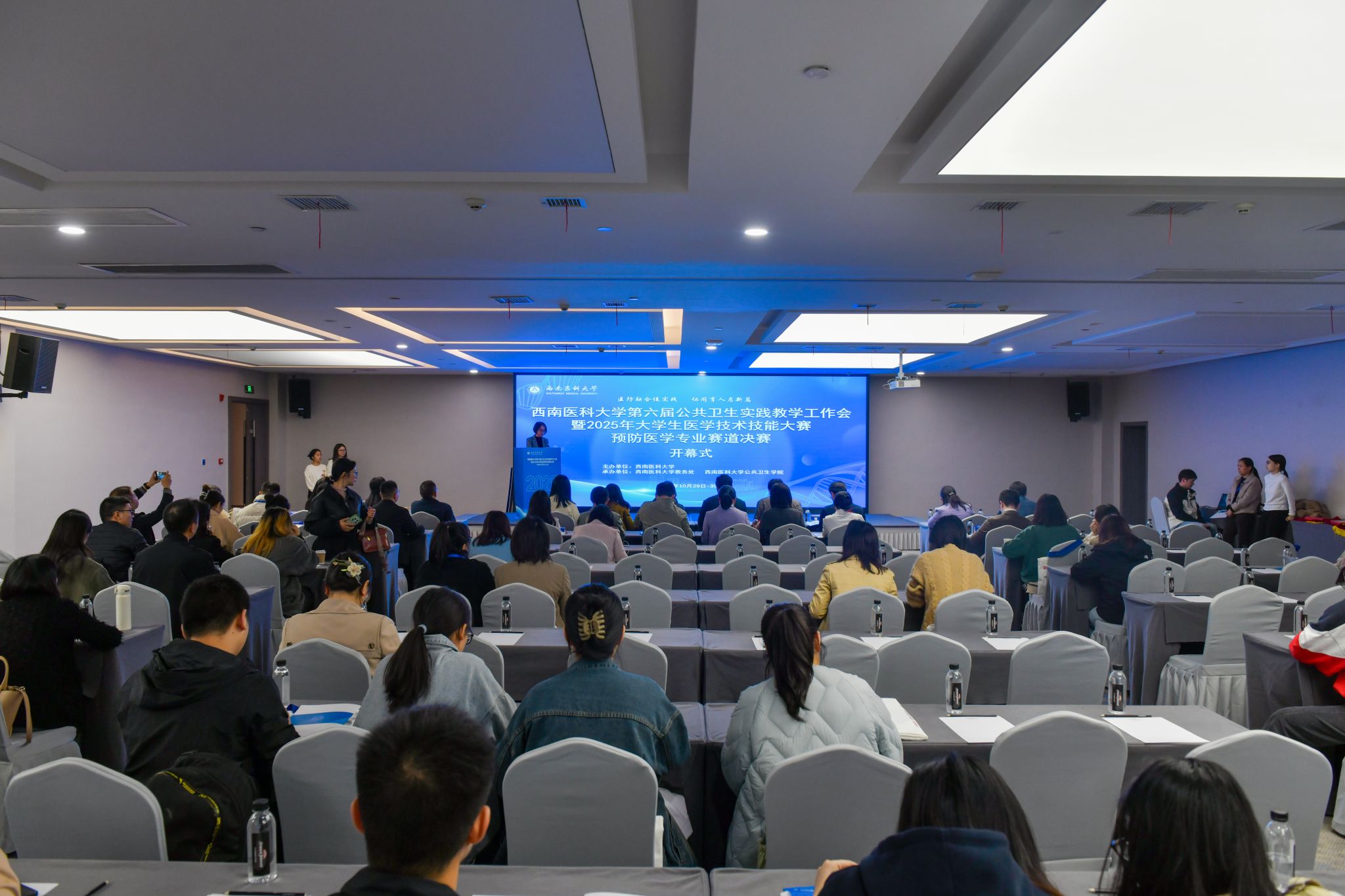 10月29日下午,西南医科大学第六届公共卫生实践教学工作会暨2025年大学生医学技术技能大赛(预防医学赛道)开幕式在西南医科大学学术交流中心(泸州酒城豪生酒店)举行。