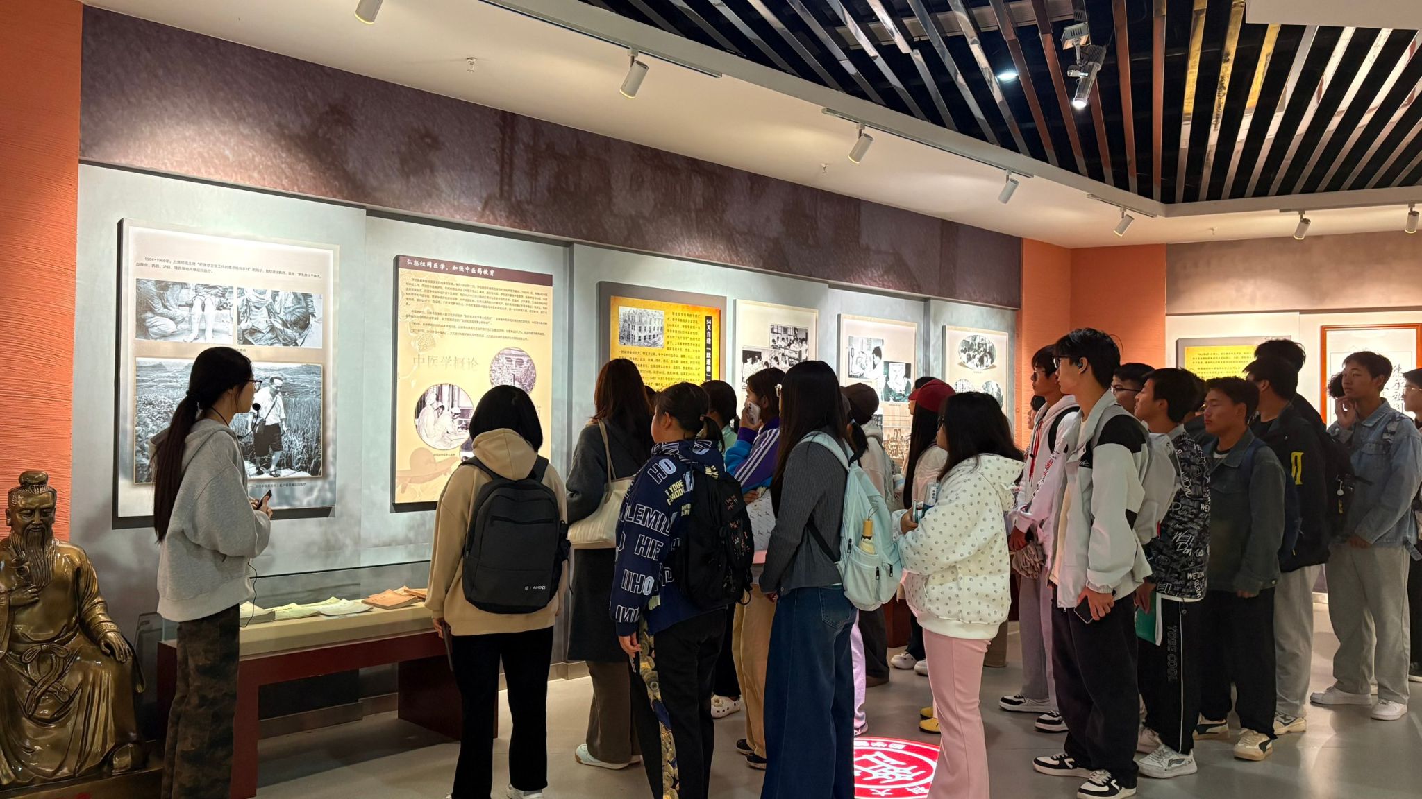参观过程中,同学们认真观看展陈,仔细聆听讲解,不时驻足交流,深切感受学校七十余年的发展脉动。一位2025级预防医学专业学生感慨道:“从1951年的医士学校,到2015年更名为医科大学;从历史厅中传承的红色基因,到鼎新厅里展现的蓬勃发展,每一个历史片段都值得我们用心品味、深刻感悟。”
