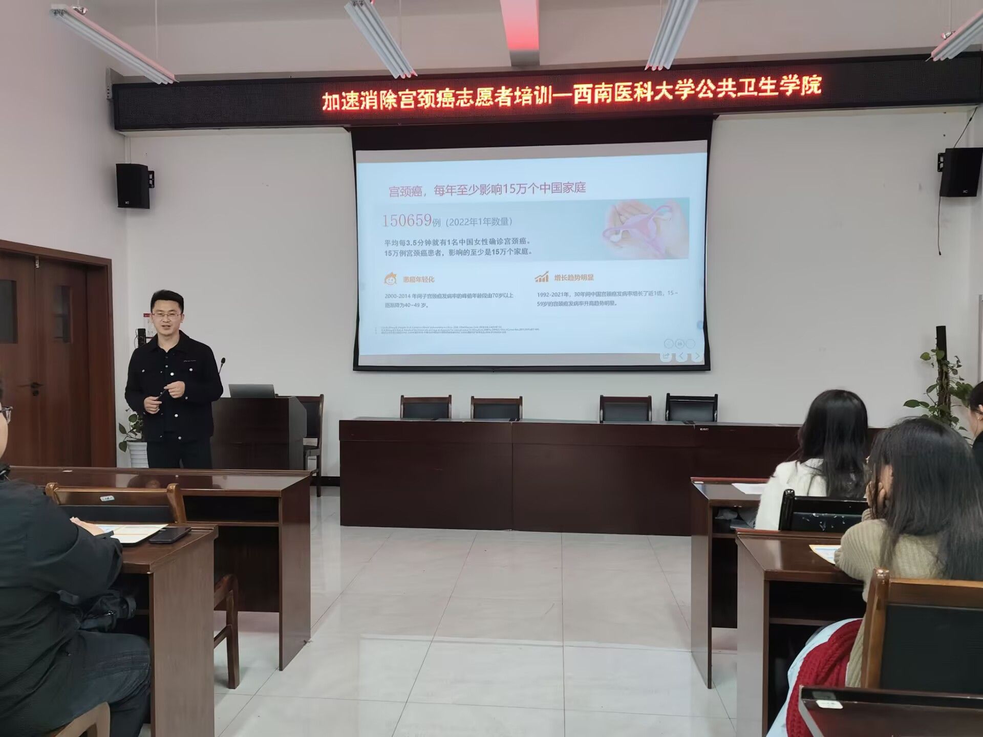 为响应国家消除宫颈癌行动计划,公共卫生学院学生党支部于11月2日晚在仁济楼319会议室举办了一场面向入党积极分子与发展对象的宫颈癌防控宣传志愿者培训会,特邀厦门万泰沧海生物技术有限公司黄德超老师进行指导。本次活动旨在发挥学生骨干的服务引领作用,为推进宫颈癌科普宣传凝聚青春力量。