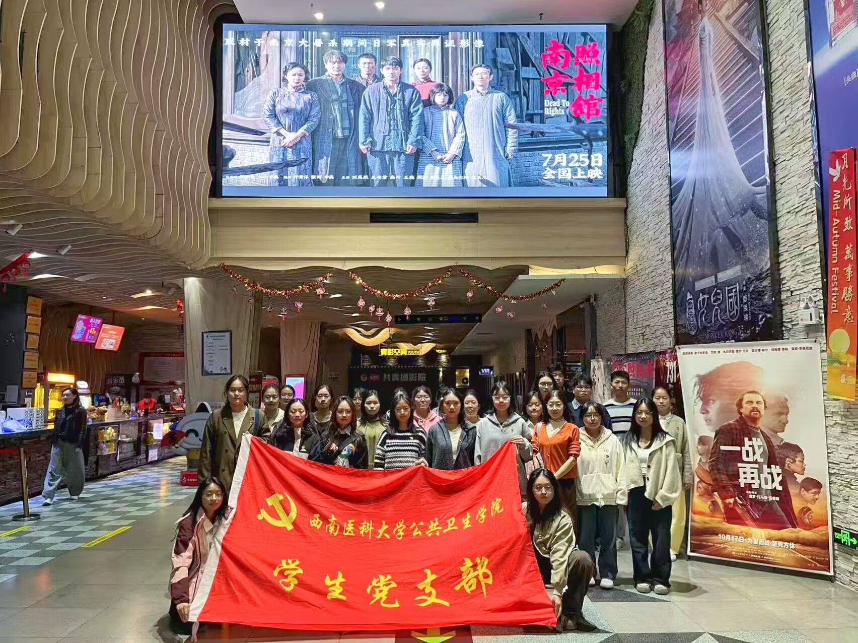 为深入推进爱国主义教育,弘扬伟大民族精神,增强学生骨干的历史使命感与时代责任感,11月9日晚,公共卫生学院本科学生党支部在酒城联娱影城组织了《南京照相馆》观影活动。本科学生党支部书记彭丽冰老师、部分学生党员、党小组及学生会主要干部积极参加此次活动。
