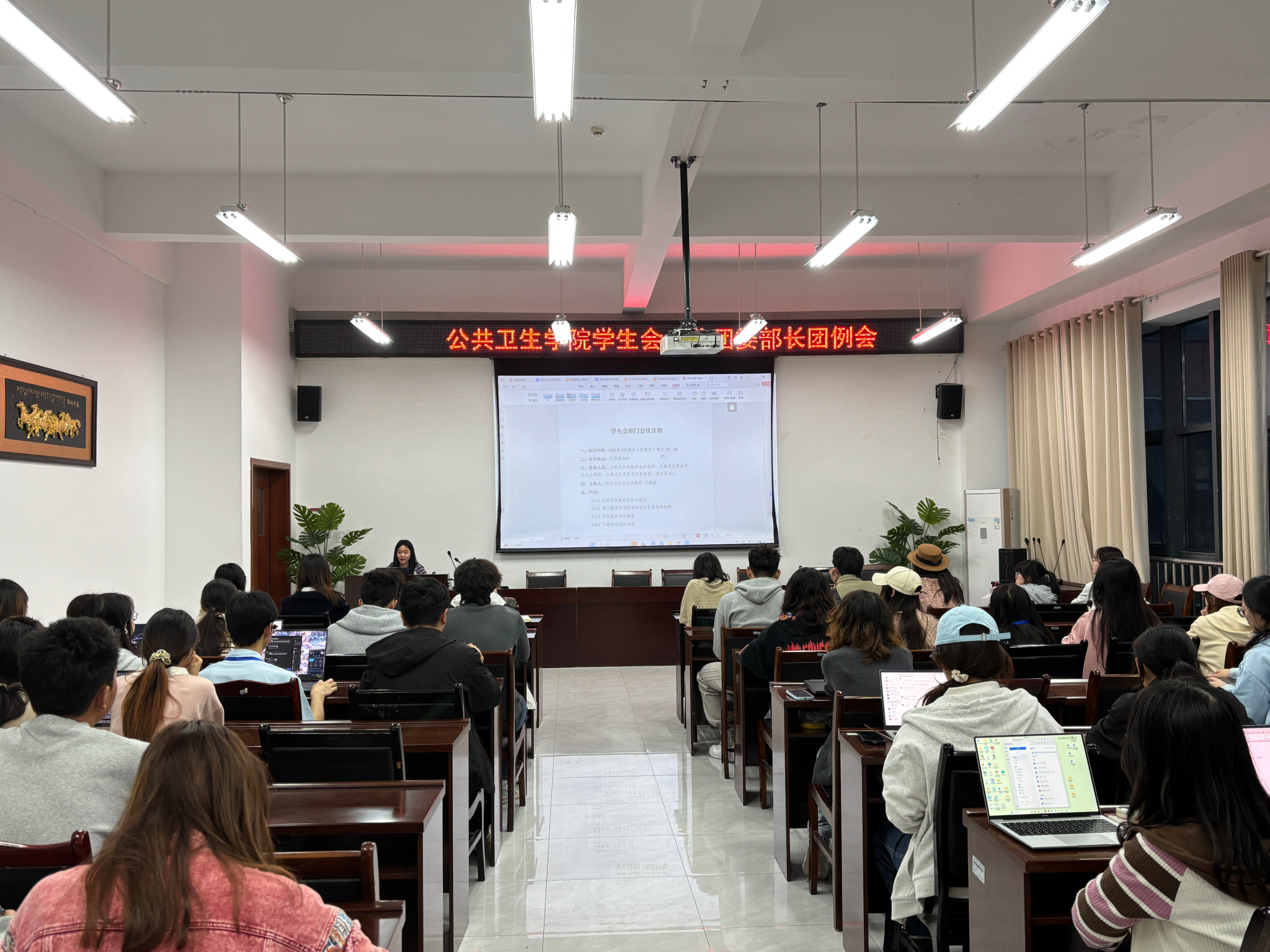 为进一步规范学生会工作流程,提升学生干部的业务能力和工作效率,夯实学生会工作基础,3月28日晚,公共卫生学院学生会在仁济楼319会议室召开学生会部门工作会议。学院学生科老师、学生会主席团、各部门部长及项目负责人参会,会议由院学生会主席石煜涵主持。