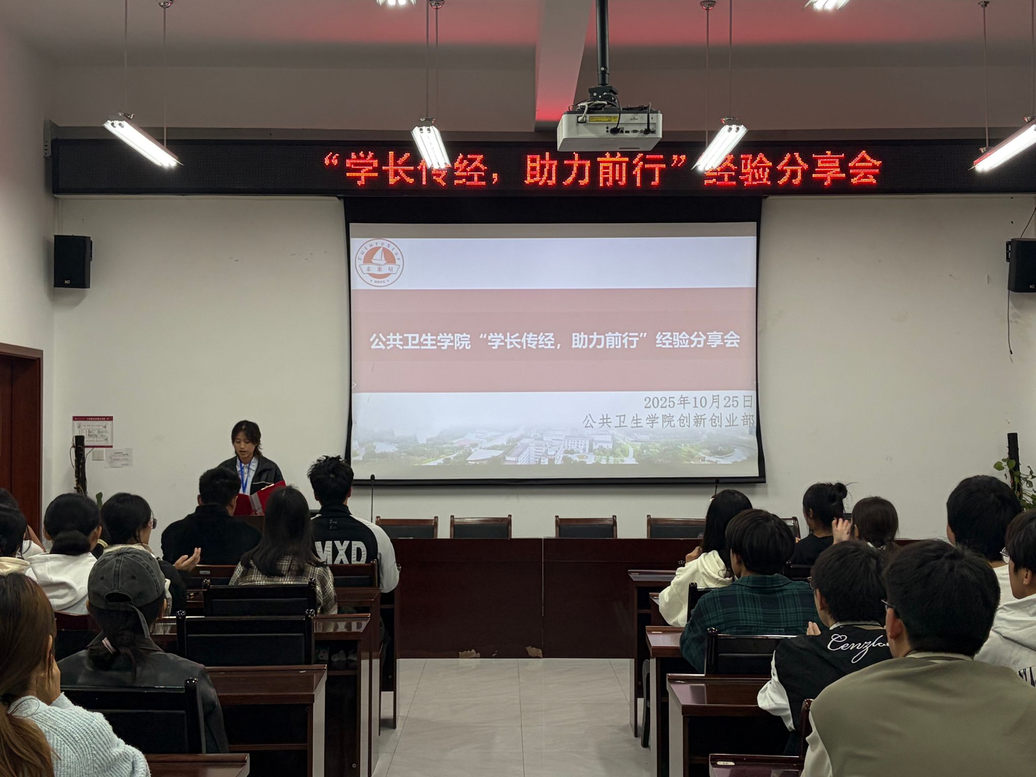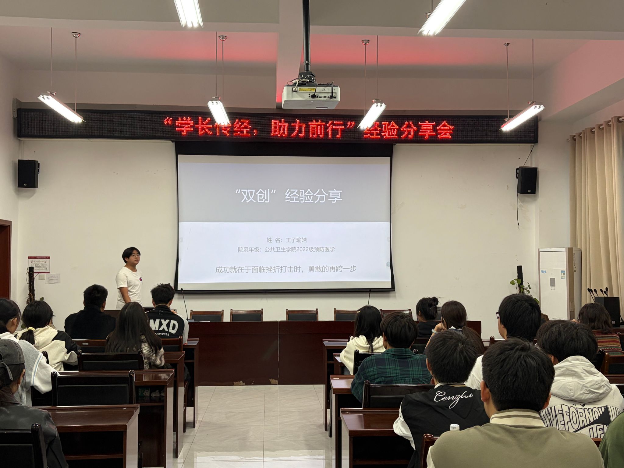 为激活学生思路,培育创新精神,10月25日晚,公共卫生学院创新创业部在仁济楼319举办“学长传经,助力前行”经验分享会。分享会特邀22级预防医学王子瑜皓学长参与分享,学院同学积极参加。