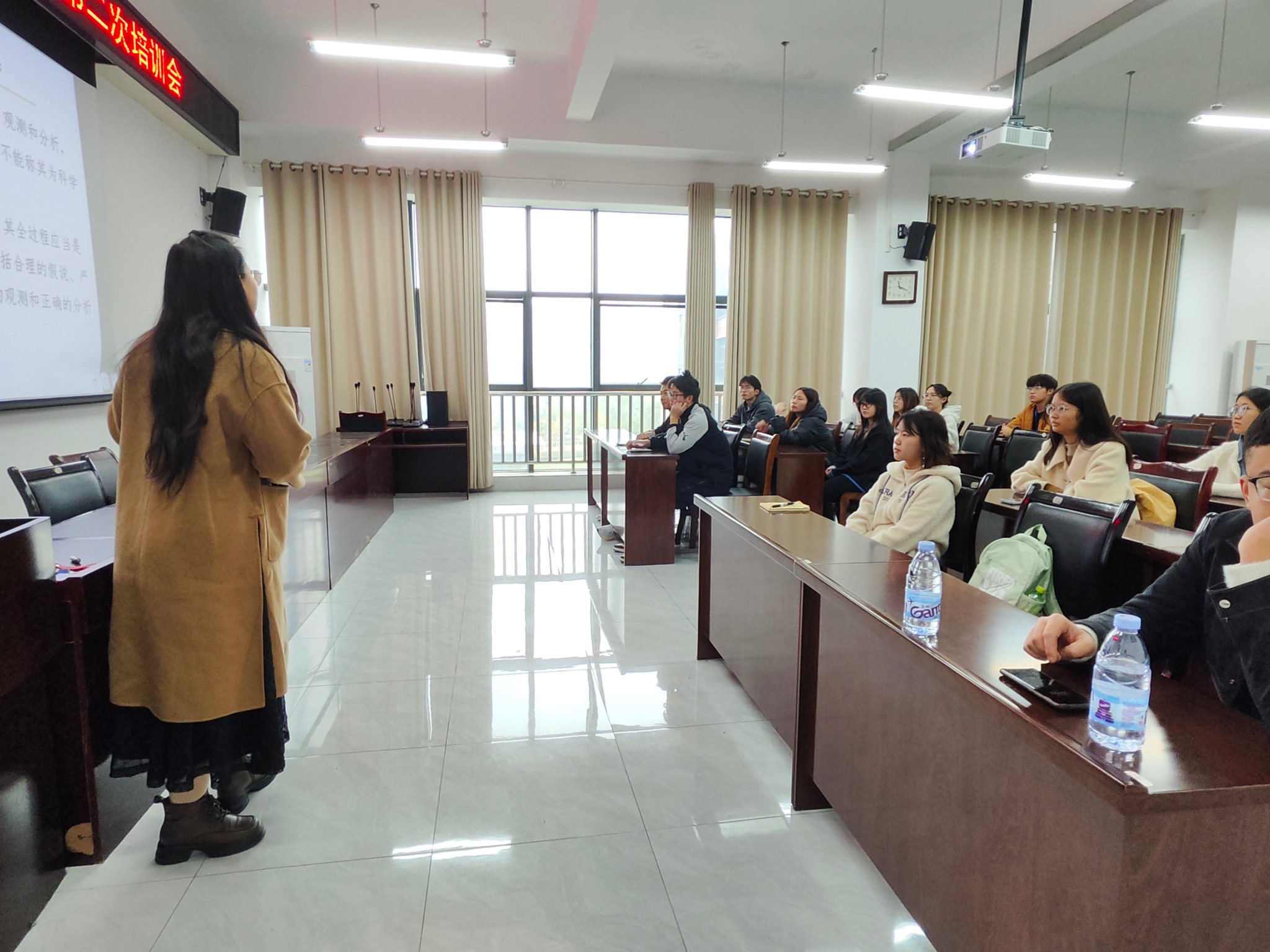 培训会特别邀请了徐正兴、甘雪辉两位老师担任主讲嘉宾。徐正兴围绕“如何精准选题”“项目书核心模块撰写要点”“研究方法与技术路线设计”“预期成果与创新性体现”以及“申报材料常见问题与规避策略”等关键环节进行了系统且深入的讲解。他强调,一个优秀的创新创业项目首先要紧密结合国家战略需求与社会发展热点,立足专业特色,同时要具备清晰的研究思路、可行的实施方案和突出的创新价值。在项目书撰写方面,甘雪辉详细阐述了摘要、立项依据、研究内容、研究方法、创新点、预期成果、经费预算等各部分的撰写规范与技巧,并通过分享优秀项目案例与反面教材,使同学们对高质量项目书的标准有了更直观的认识。