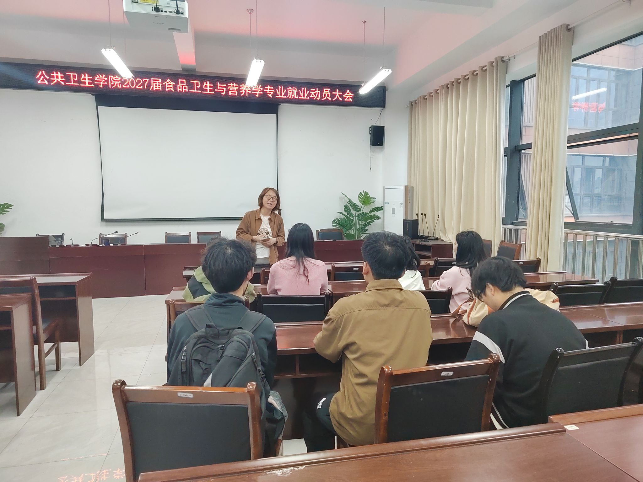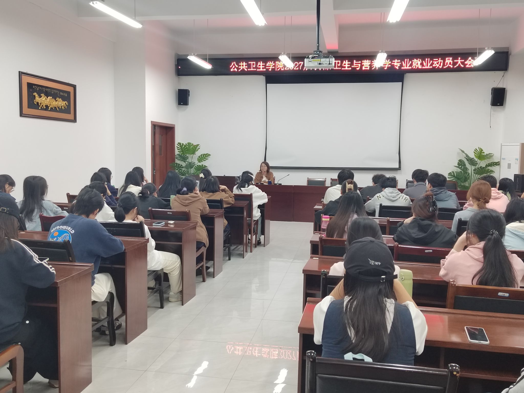 为帮助毕业生明确职业方向、破解就业困惑,2026年4月22日下午,公共卫生学院召开2027届食品卫生与营养学专业毕业生就业动员大会,学院党委书记马玲教授担任主讲人,51名同学参加会议。