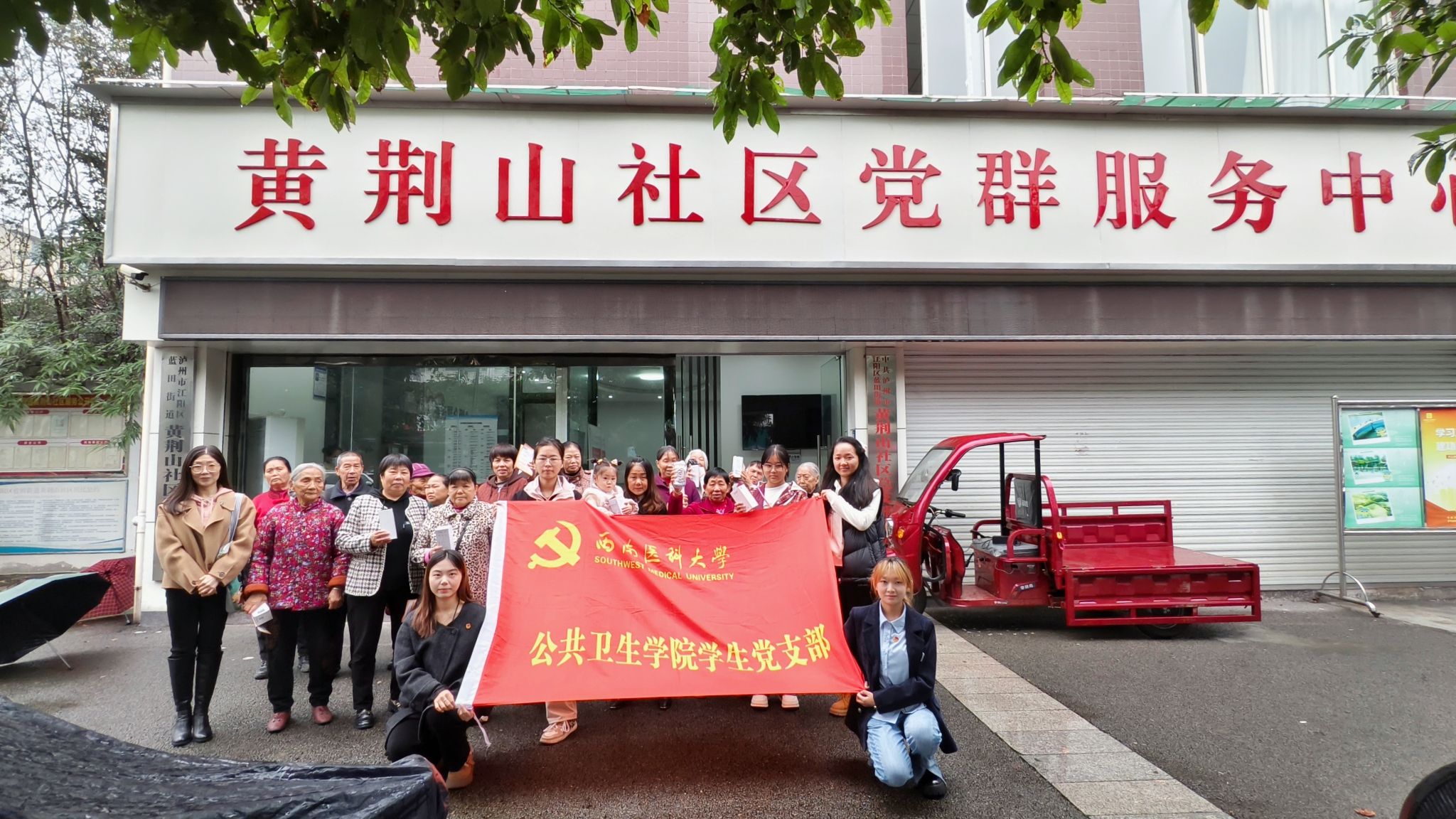 为积极响应世界卫生组织提出的“全球消除宫颈癌”的号召,提升社区女性健康意识,增强对癌症预防、筛查的关注,11月13日至14日,公共卫生学院本科学生党支部书记彭丽冰带队在泸州市胡市社区、黄荆山社区开展消除宫颈癌宣讲活动。入党积极分子缪蕊、张玉儒,严清娜、刘佳蕾担任宣讲员。