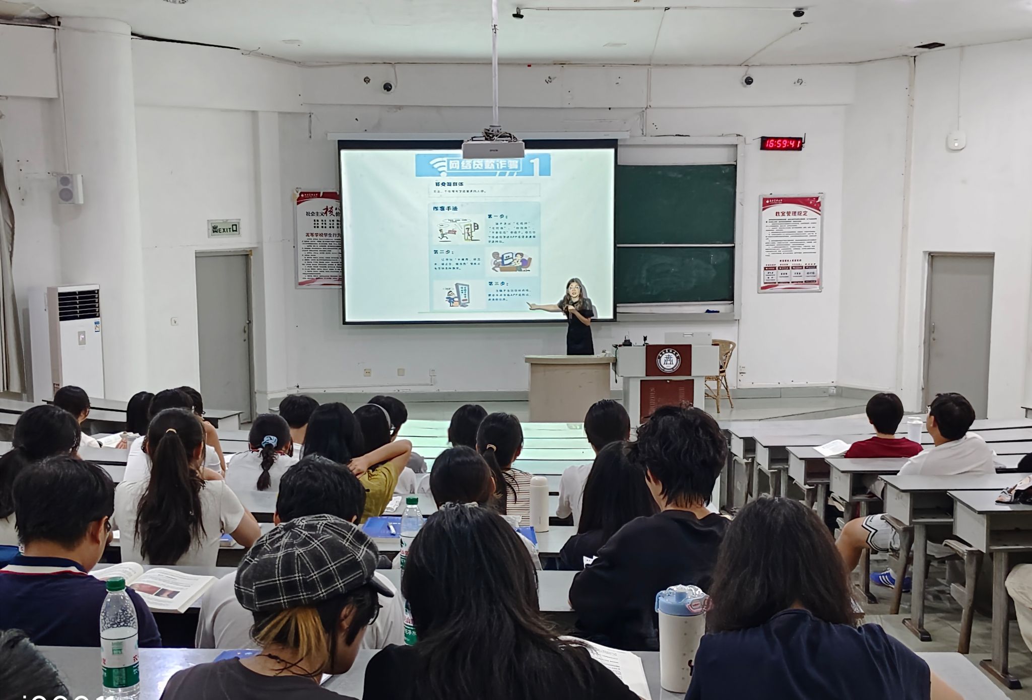 为切实提升学生防范电信网络诈骗的意识,有效遏制校园诈骗案件发生,公共卫生学院学生科科长彭丽冰在2025年10月14日下午分别在鸿文楼101,海川楼313,仁济楼319,为2023级三个专业学生开展防范电信网络诈骗专题教育讲座,将反诈安全知识精准传达到学生群体。
