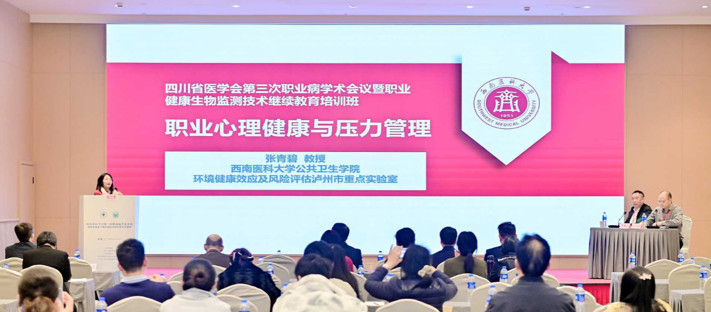 公共卫生学院环境卫生与劳动卫生学教研室/环境健康效应及风险评估泸州市重点实验室张青碧教授及多名研究生参会。张青碧受邀在大会主会场做题为“职业心理健康与压力管理”专题报告。