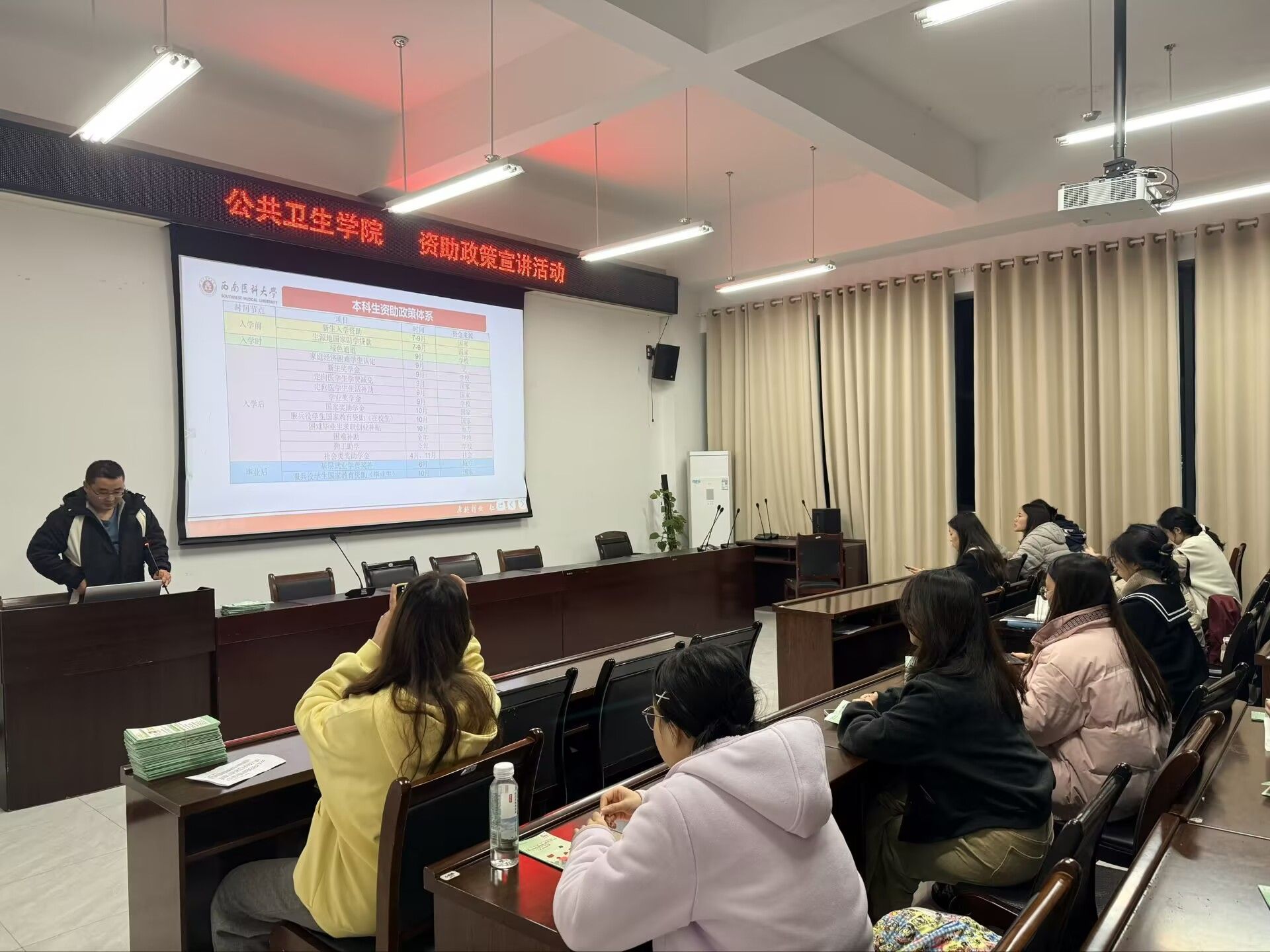 资助政策是助力困难学子成长成才的重要途径,为加强同学对于资助政策的全面了解,11月26日晚,公共卫生学院在仁济楼319会议室举办学生资助政策宣讲活动。活动特邀学院学生科辅导员孙夫钦出席,各年级班长、团支书、生活委员等百余名学生骨干参与。