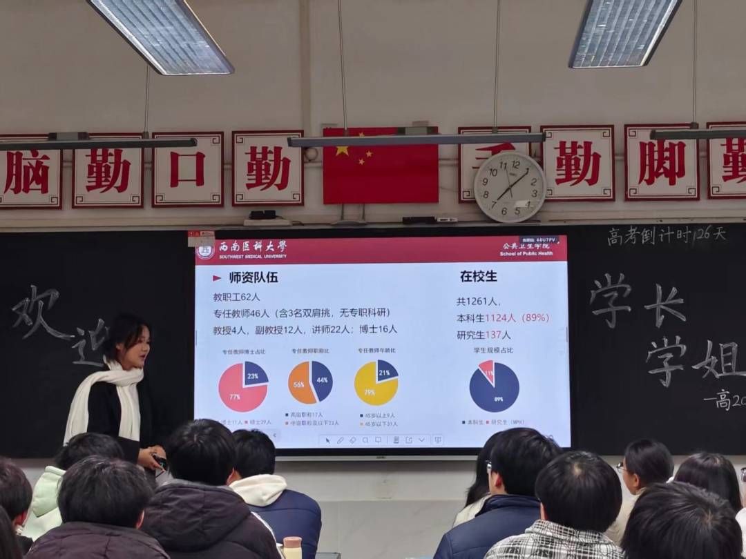 2026年2月2日,正值高考冲刺126天的关键阶段,西南医科大学公共卫生学院学生宣传大使曹钦扬走进北川中学,为高三学子带来一场贴近需求、生动深入的招生宣讲与升学指导活动。本次活动以朋辈交流为主线,旨在帮助备考学子明晰方向,增强信心。
