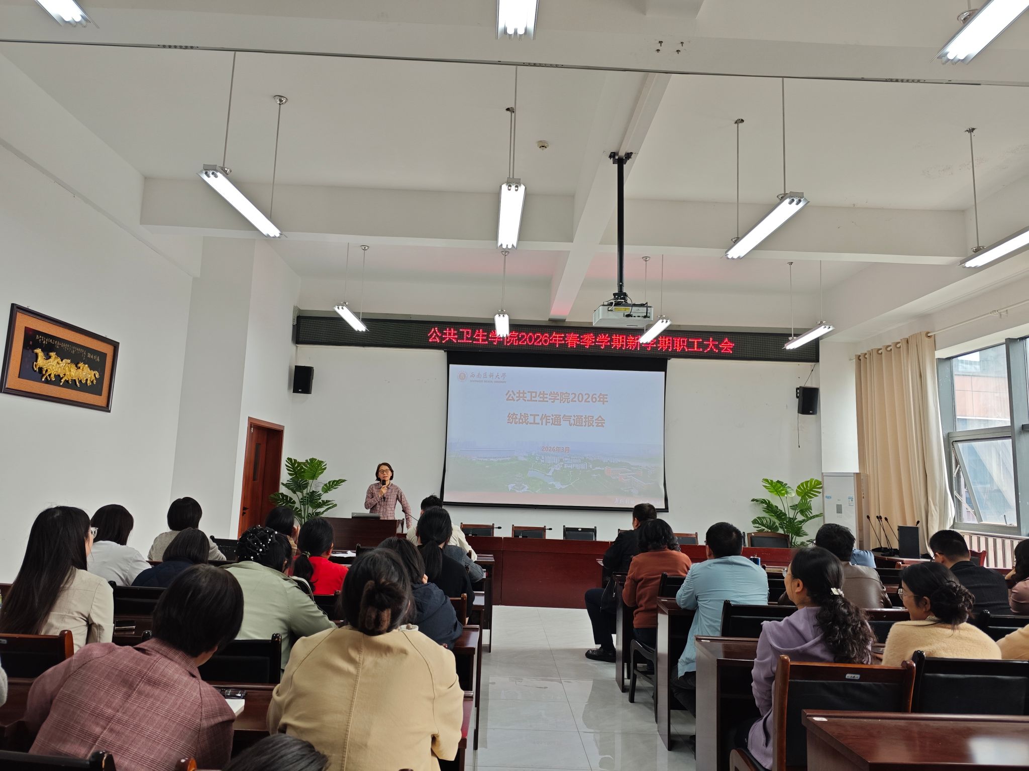为凝聚共识、汇聚力量,扎实推进新学期统战工作高质量发展,公共卫生学院于近日召开2026年新学期统战工作通气通报会。学院党政领导班子成员、各民主党派教师、统战工作负责人等20余人参会,共商新学期统战工作新举措。