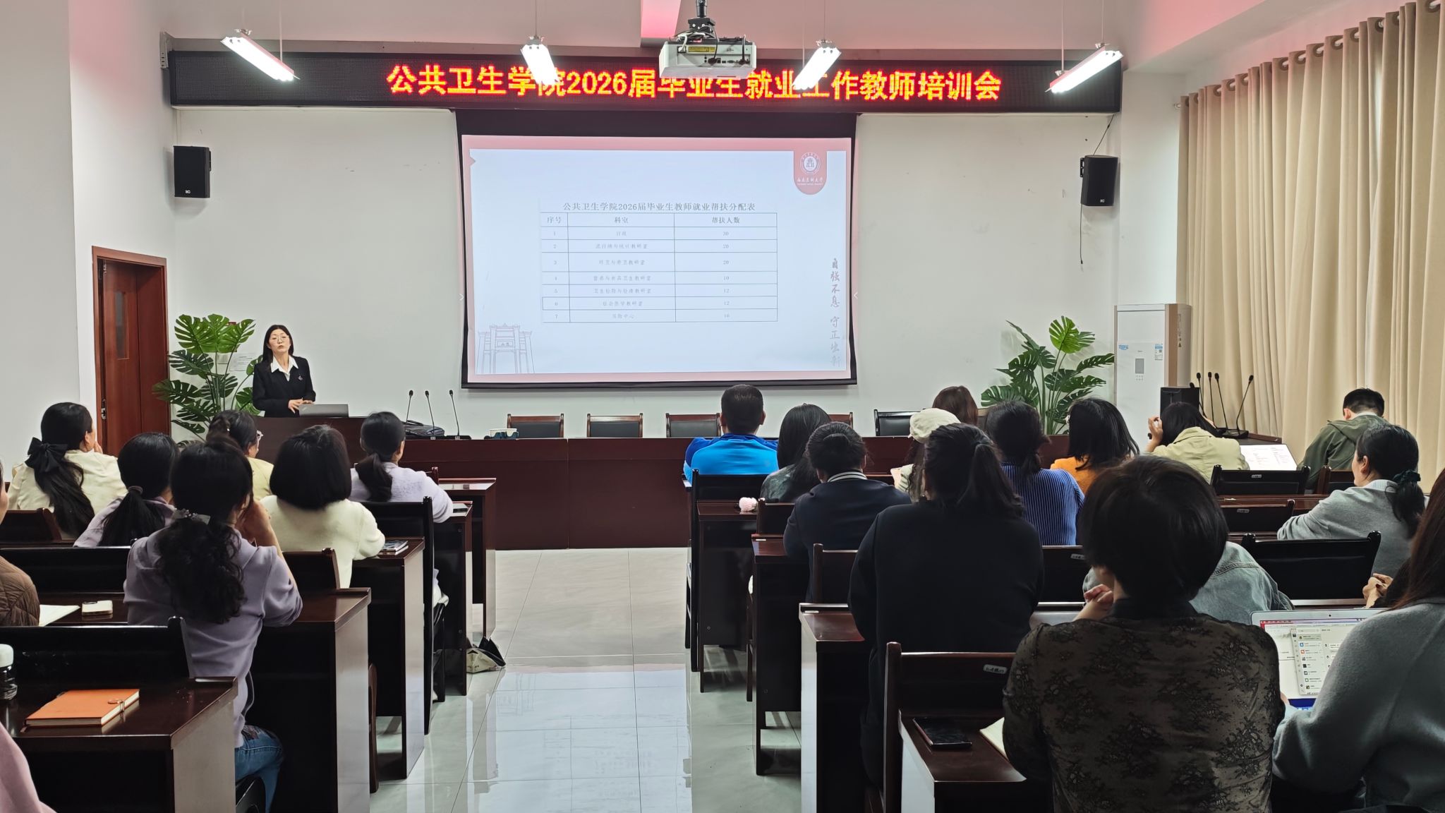 为深入推进2026届毕业生就业工作,提升学院就业指导服务能力,4月7日,公共卫生学院在仁济楼319会议室开展2026届毕业生就业工作教师培训会。学院全体院领导、学生科和全体老师参加。