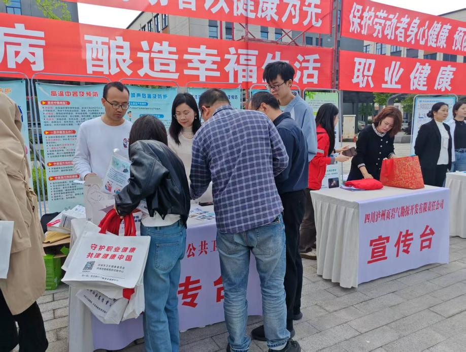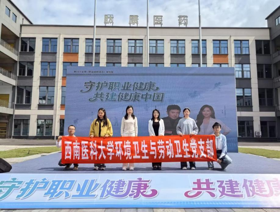 为积极宣传贯彻《职业病防治法》,推动用人单位落实主体责任,提升劳动者职业健康防护意识,2026年4月22日,西南医科大学公共卫生学院环境卫生与劳动卫生党支部在泸县经开区西南美谷开展了宣传周暨第3个“职业健康集中宣传月”活动。