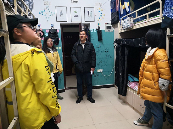 座谈会后,李老师和助班梁娟及班干部一起走访了男、女生寝室,检查了学生宿舍安全和卫生情况,要求同学们节约用水和用电,保持寝室环境卫生,注意用电安全,保护好个人人身和财产安全。